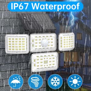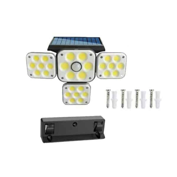 Ηλιακός προβολέας LED τριών τμημάτων με προσαρμόσιμη θέση, με αισθητήρα κίνησης και ευρεία γωνία φωτισμού. Αδιάβροχος και ανθεκτικός στις καιρικές συνθήκες. Αποτελεί ιδανική λύση για απόλυτα οικονομικό φωτισμό εξωτερικών χώρων.
