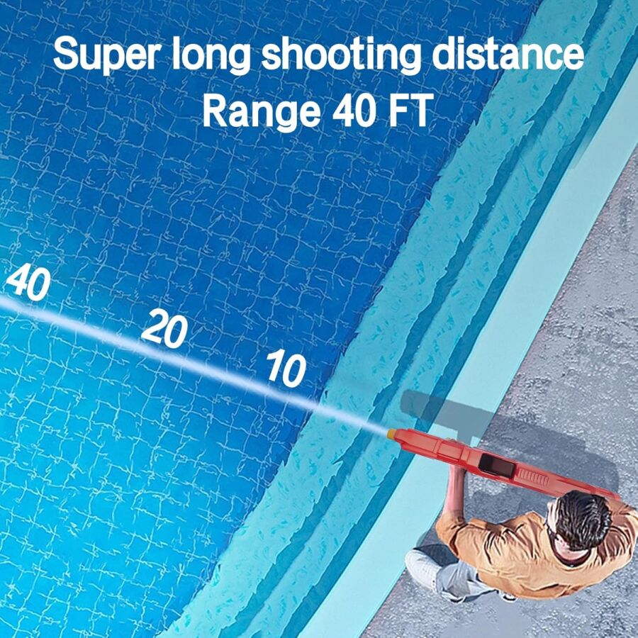 - Μεγάλο ηλεκτρικό πιστόλι νερού: Με μέγεθος 23,6 * 8,2 ίντσες, είναι το τέλειο μέγεθος για πάρτι παιχνιδιών στην πισίνα / υπαίθριες μάχες με νερό